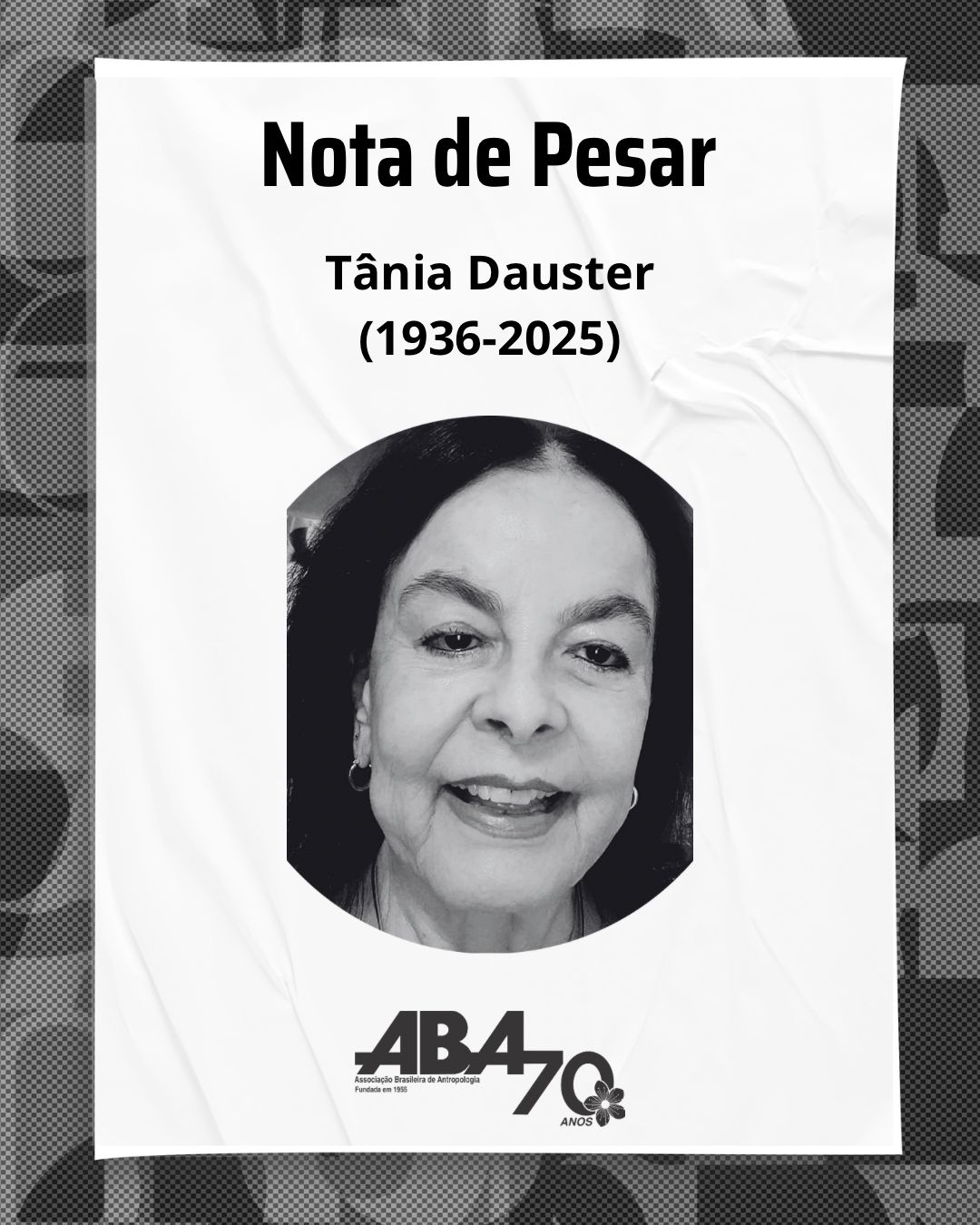 É com profundo pesar que a Associação Brasileira de Antropologia comunica o falecimento da Professora Doutora Tania Dauster. Antropóloga e Professora Emérita da PUC-Rio, Tania integrou a ABA e foi uma das vozes pioneiras no campo da Antropologia e Educação. Deixa como herança intelectual um modo singular e abrangente de compreender a educação como expressão da cultura, perspectiva que marcou e segue inspirando inúmeras pesquisas nas ciências humanas. Foi, e continuará sendo, exemplo de rigor, generosidade e compromisso acadêmico. Aos familiares, amigos, colegas e a todos que tiveram o privilégio de aprender com sua sensibilidade e sabedoria, estendemos nossa solidariedade e nossos mais profundos sentimentos diante desta perda inestimável.