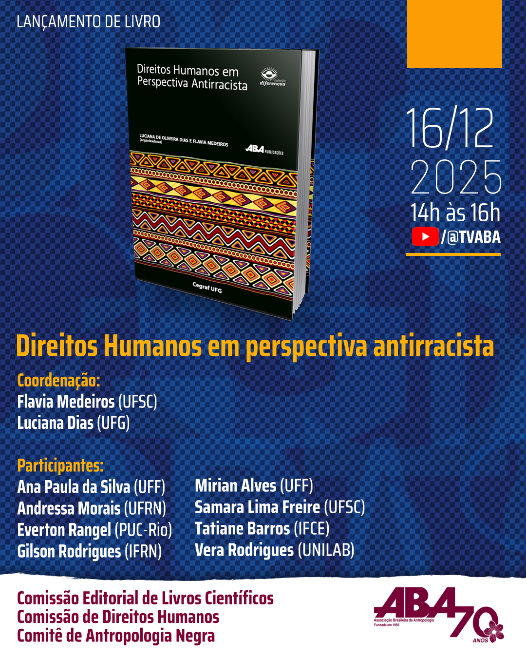 Lançada em dezembro de 2024, a coletânea reúne manuscritos de autoria de antropólogas e antropólogos que descrevem e analisam processos articulados em torno da demanda por direitos e reconhecimento da diversidade e da luta antirracista em contextos diversos. As temáticas mobilizadas gravitam em torno da organização política de populações indígenas e quilombolas; encarceramento e violência de Estado; ações humanitárias; migração e refúgio; subjetivação, trabalho e organização política de mulheres negras. Inicialmente, o livro reflete sobre a associação entre os processos de formação de uma estrutura de poder que se baseia na hierarquização racial e social entre os sujeitos e a constituição de um complexo e duradouro sistema de exploração baseado no racismo que precariza e desumaniza vidas, sequestra dignidades e impede o reconhecimento e efetivação de direitos a segmentos e populações precarizadas. Este livro contribui para um posicionamento inevitável no debate na disciplina antropológica diante do reconhecimento de direitos na diferença, tanto quanto da valorização e explicitação da posição epistemológica de antropólogas negras e antropólogos negros que historicamente foram invisibilizados, apagados e subjugados à condição de saber marginalizado, minoritário e, pejorativamente, militante. Assim, um ano depois de seu lançamento, organizadoras e autores nos reunimos para dialogar sobre a obra, ora processo, ora resultado, que se configura como uma ferramenta fundamental para demarcar a presença negra, com agência e autoria, na antropologia brasileira comprometida com a luta por direitos e com a inovação teórica e metodológica da disciplina.