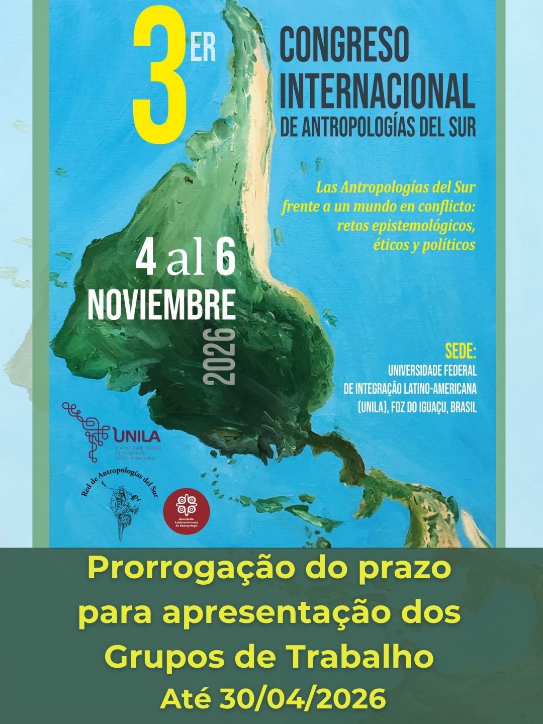 O congresso acontecerá na Universidade Federal de Integração Latino-Americana (UNILA), em Foz do Iguaçu, Brasil, na tríplice fronteira do Cone Sul (Paraguai, Argentina e Uruguai), entre os dias 04 a 06 de novembro de 2026. Informações: https://antropologiasdelsur.org/.